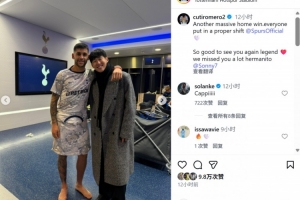 孙兴慜重回热刺主场,现任球队队长罗梅罗也在社媒晒出与孙兴慜的合照,配文写道:“又拿下一场关键的主场胜利,每个人都做出了自己的贡献。很高兴与球队传奇重逢,我们太想念你了兄弟!”