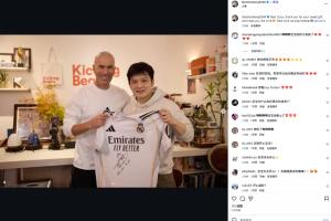 体育资讯12月11日讯 樊振东今日晒出了与齐达内互换礼物的照片。