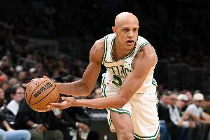 上半场比赛,凯尔特人球员沃尔什发挥出色,不仅防守端依旧稳定,进攻端也是充满活力,三分和补篮一球不丢。