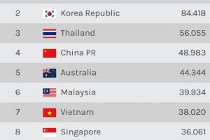体育资讯12月15日讯 据数据网站footyrankings统计,在最新的亚足联俱乐部赛事系数分排名中,中超系数分48.983,落后泰超已达到7分,并且领先身后澳超的优势只剩下4.6分。